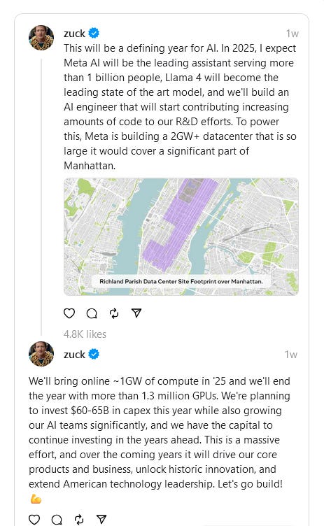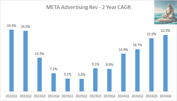 Just before the Q4’24 earnings call MZ declared capex for 2025 would be $60 billion to $65 billion implying a ~45%-50% annual growth rate between 2023 and 2025.